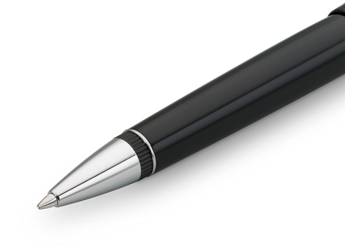 The ballpoint pen consist of more than 15 individual parts. The pen lining is made of deep black acrylic (PMMA) and polished and assembled by hand.